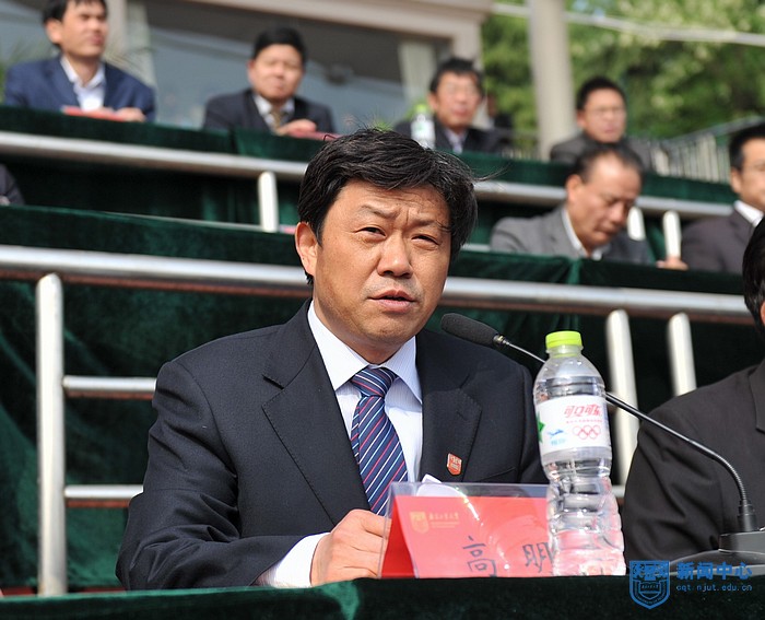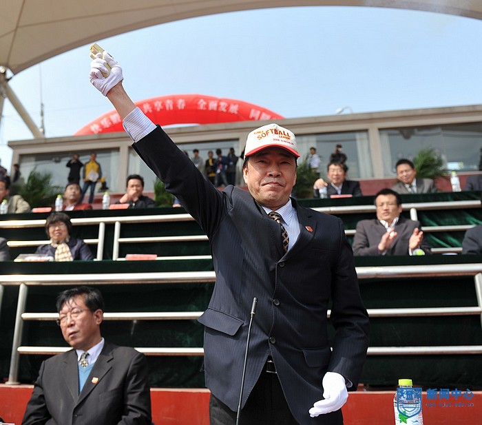 副董事长朱跃钊教授宣布运动会比赛正式开始并鸣枪示意。