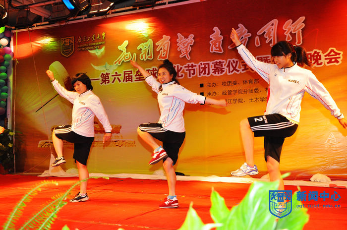 一支《世界因爱发光》开场舞拉开了晚会的帷幕。晚会节目丰富多彩、形式多样。不仅有民族弹唱《阿里黑沙》,劲爆现代舞《cool girl hot dance》、《change》,还有相声、情景剧、诗朗诵、截拳道和手语等五种不同风格的精彩节目。中国国家垒球队、韩国国家垒球队和江苏女垒还特意为本次晚会准备了精彩的节目,在现场为观众赠送签名垒球作为礼物,将晚会气氛推向高潮。本次晚会持续近两个小时,现场掌声不断,同学们热情不减。晚会在手语舞蹈《生生不息》中圆满落幕。
