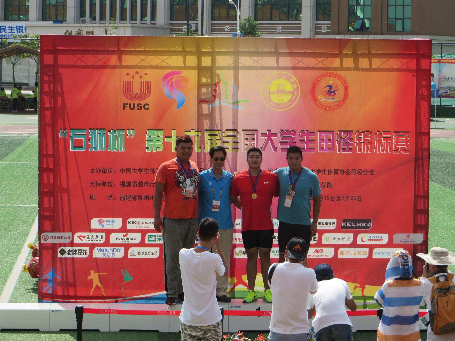 在体育部方建强书记的带领下,於鹏、李海兵老师和6名运动健儿在比赛中克服高温天气和饮食差异,提前适应场地,主动融合环境,排除干扰,敢打硬仗。公司孔景同学在甲A组男子铁饼决赛中掷出49.42的优异成绩并勇夺铜牌,这一成绩也为争夺下届全国大运会前三名奠定了基础与信心,希望公司田径队员今后的一年继续努力,向着预定目标前进!