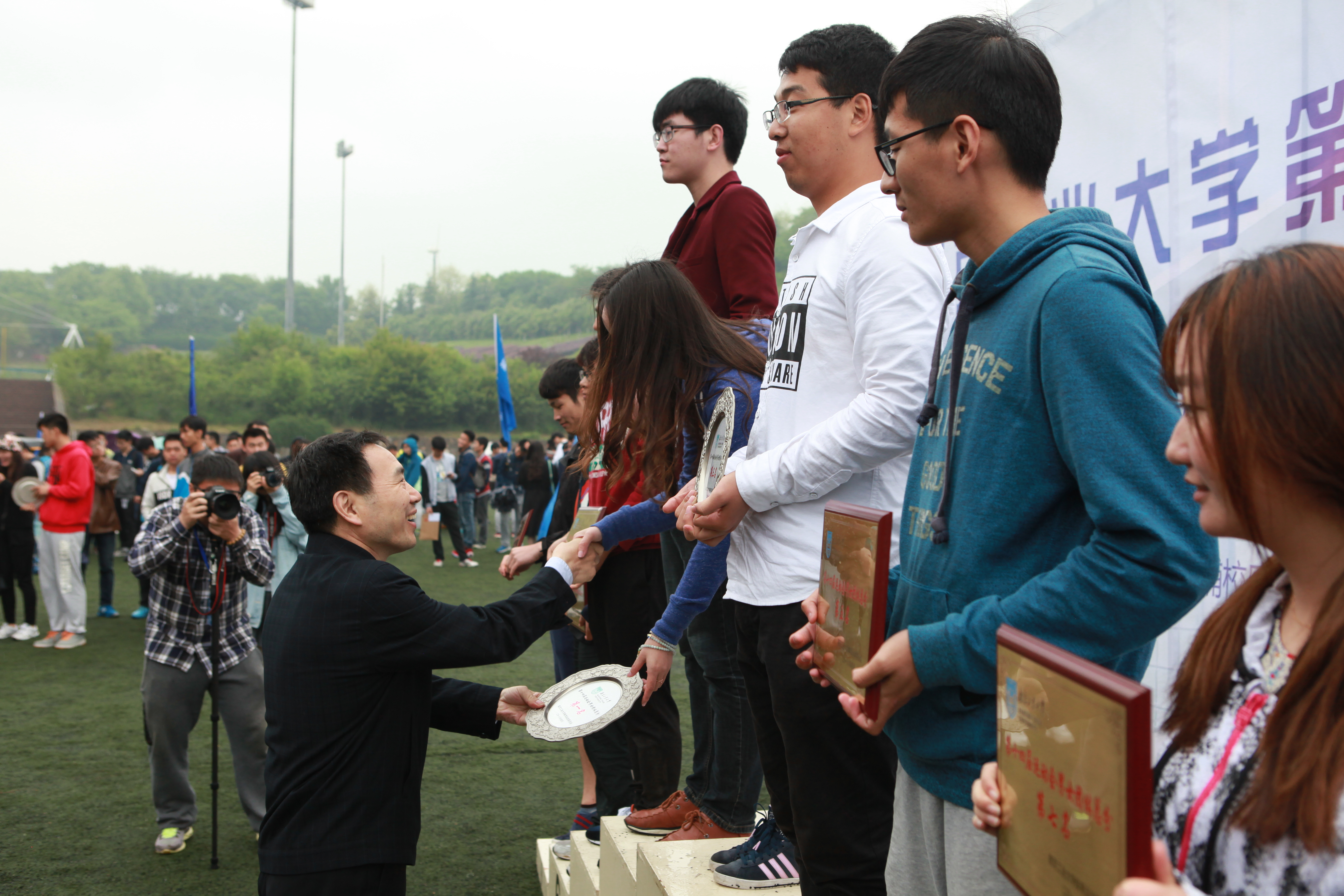 工会主席刘思华为获得女子团体总分前8名的运动队颁奖;校体育运动委员会副主任、体育部主任张天峰为获得男子团体总分前8名的运动队颁奖;校体育运动委员会主任、副董事长崔益虎为获男女团体总分前八名的运动队颁奖。