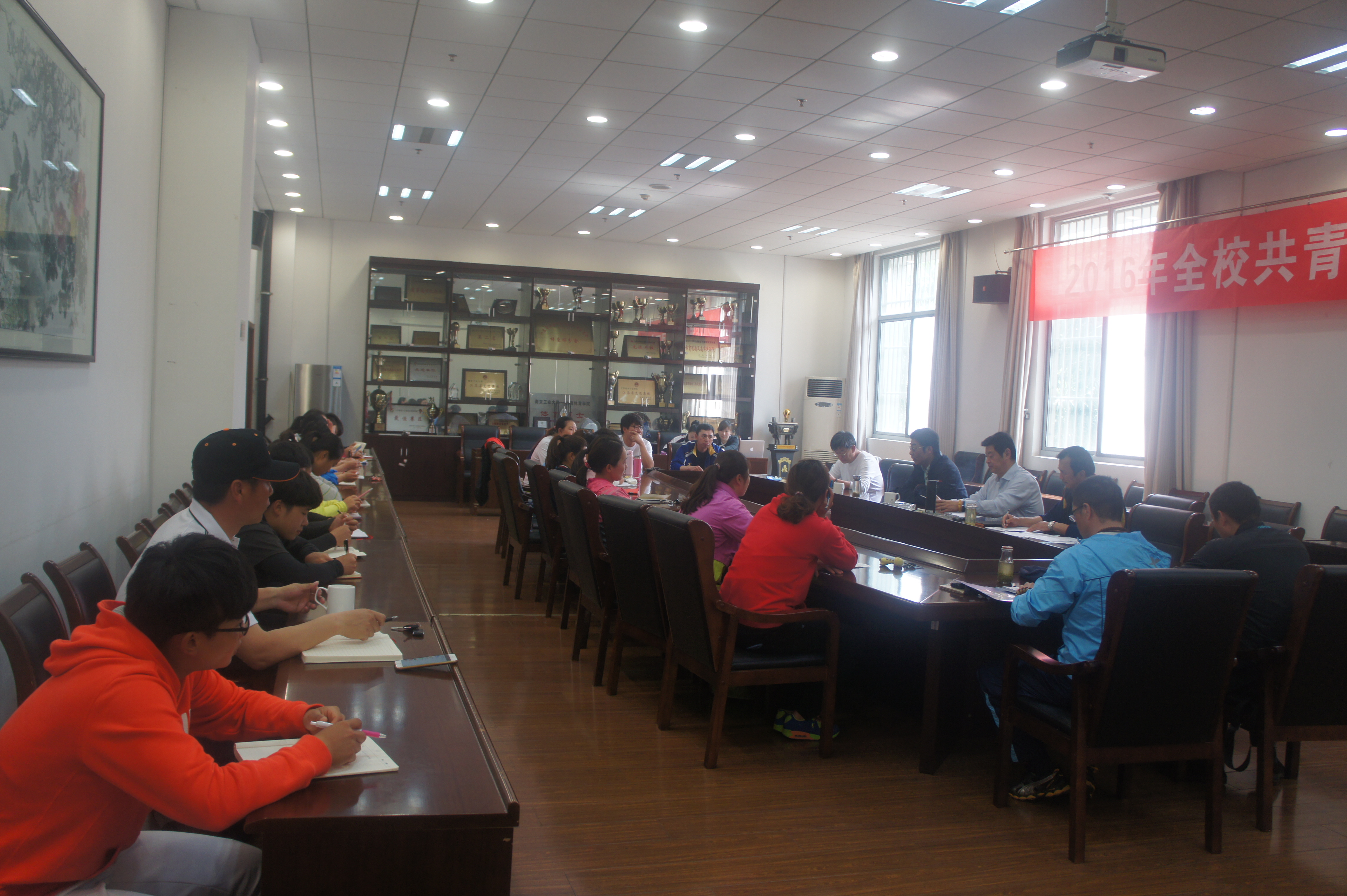 4月12日上午,在公司江浦校区体育馆会议室,校江苏女垒召开2016年度上半年训练比赛总结会议。省体育局手曲棒垒中心主任严小平、校体育部主任张天峰教授、校体育部书记方建强、南工江苏女垒主教练宋秋元、教练员周育红、副领队刘峰、李海兵及体育部办公室主任陈军、江苏女垒队务贡新烨、校女垒教练员蔡协清等参加了会议。会议由校体育部主任张天峰教授主持。