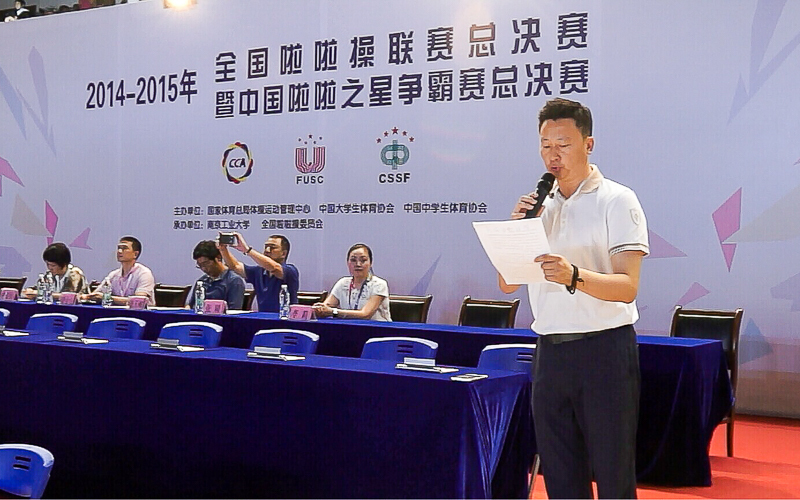 2015717日,2014-2015年全国啦啦操联赛总决赛暨“中国啦啦之星”争霸赛总决赛,在williamhill中文(浦口校区)体育馆举行了幼儿园、小学组开幕式。全国啦啦操委员会秘书长唐金山先生,南京市体育局竞体处处长仲爱频女士,中国啦啦操分会主任、全国啦啦委员会执行副主任李育林先生,williamhill中文体育部主任张天峰先生,中国药科大学体育部主任张陵先生,全国啦啦操委员会技术部部长李莉女士及各部门负责人出席开幕式。