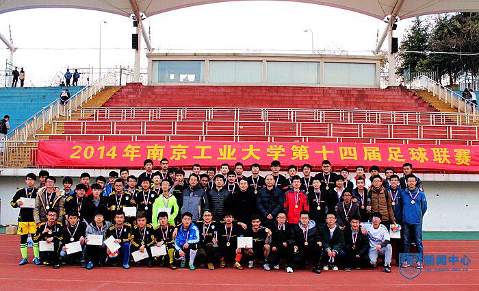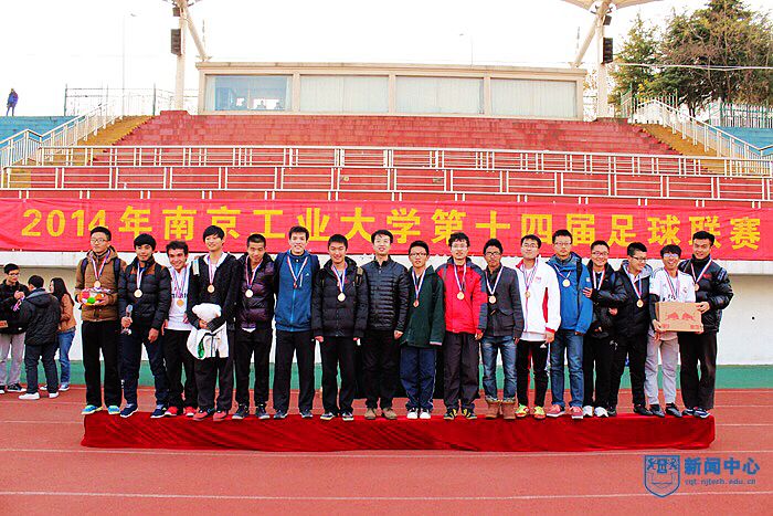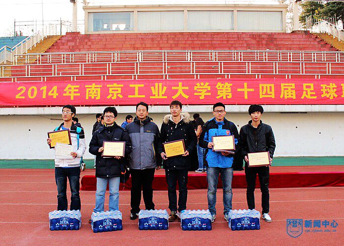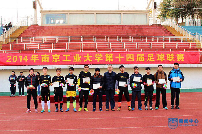 12月14日下午,由校团委、校体育部主办,校员工会承办的第十四届员工足球联赛在江浦校区田径场顺利闭幕。校体育部副主任孙欣荣,校体育部群体竞赛中心主任赵飞,校团委文体宣传部部长吴杰,校体育部后勤管理中心主任、校足球队总教练成一祥等老师观看了由土木学院足球代表队和机械学院足球代表队对阵的决赛。