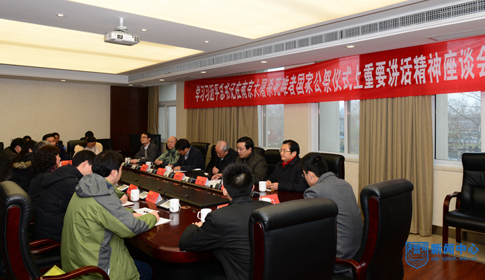 12月15日下午,学校召开学习习近平总书记在南京大屠杀死难者国家公祭仪式上重要讲话精神师生座谈会。公司党委副书记、副董事长高明出席,18名师生代表畅谈学习体会。党委宣传部部长张健主持座谈会。
