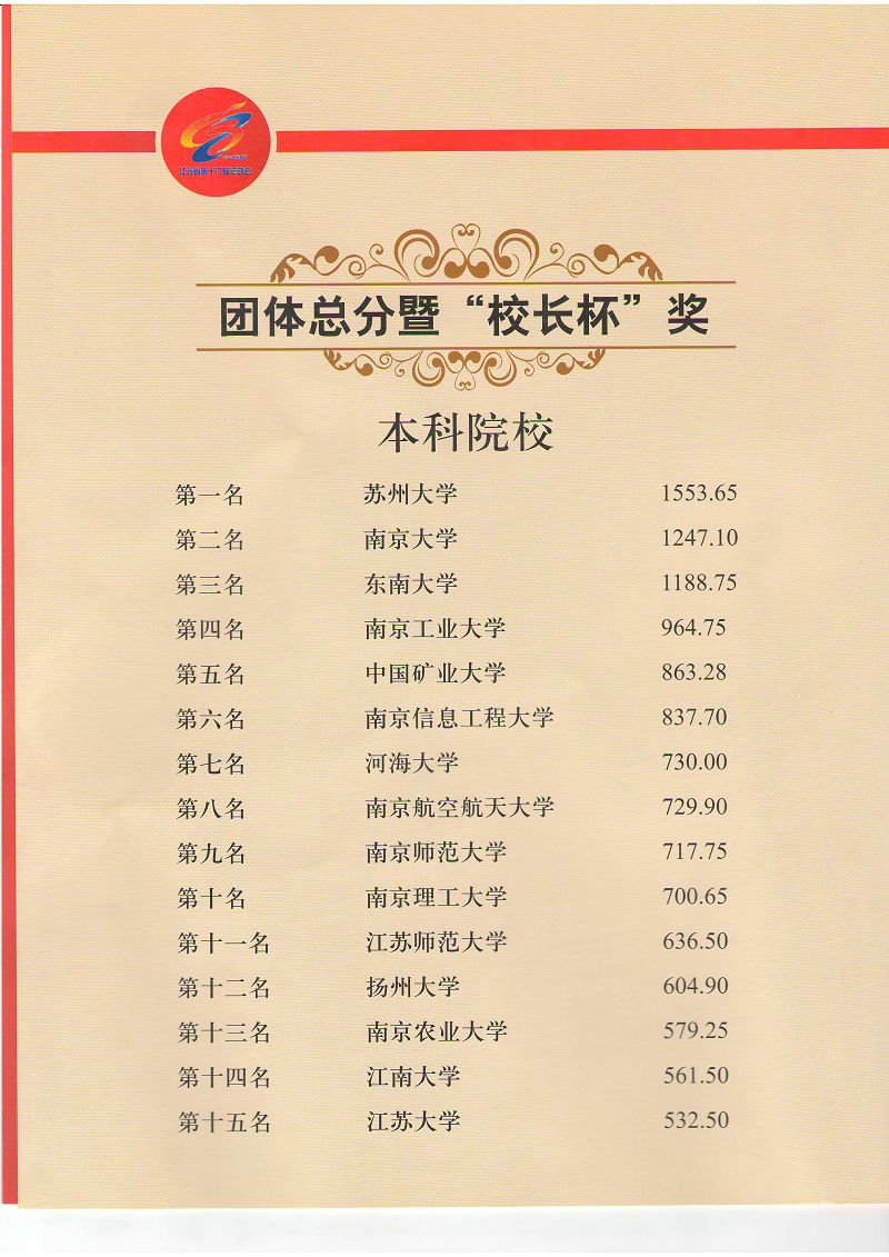 在总结大会上,还表彰了团体总分“董事长杯”奖,“体育道德风尚奖”代表团,“最佳赛区”和“后勤优质服务”单位。公司除了已在省运会闭幕式上获得了团体总分“董事长杯”奖和“体育道德风尚奖”代表团外,本次又荣获了省十八届运动会高校部比赛“最佳赛区”和“后勤优质服务”单位称号,公司体育工作再一次获得了江苏省教育厅的认可和表彰。(来自体育部)