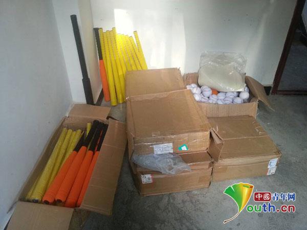 支教团联系社会爱心企业捐赠的软式垒球物资。