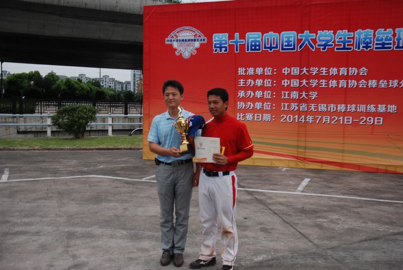 同日下午4点,公司迎来了非常关键的一场比赛,对手是华东政法大学队。公司队员在比赛一开始就表现的非常积极,前三局在防守端表现了自身优势。并在第一局再次取得1:0的优势,但是还没等公司队员扩大战果,却被对手抓住机会,在第四局上连扳三分,虽然王宏斌在下半局扳回了一城,但对手在第四局上再次抓住公司队员失误,再下一分。尽管公司队员奋起直追,但只由朱家栋追回一分,再次以一分落败。最终,校棒球队获了本次比赛的高水平组第三名。