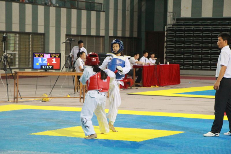 7月9日下午,由江苏省教育厅、江苏省体育局主办,江苏省员工体育协会高校工作委员会协办、江苏师范大学承办的“江苏省第十八届运动会高校部跆拳道比赛”在江苏师范大学落下帷幕。一共有24所高校参加了普通本科组(甲B)比赛,比赛项目共设男、女项目12项,公司跆拳道队共派出男女各四名运动员参赛,参加八个公斤级较量。在所参加的八个项目中,校跆拳道队共获两枚银牌,两枚铜牌,三个第五名的佳绩,创造了跆拳道队建队以来的最好成绩。