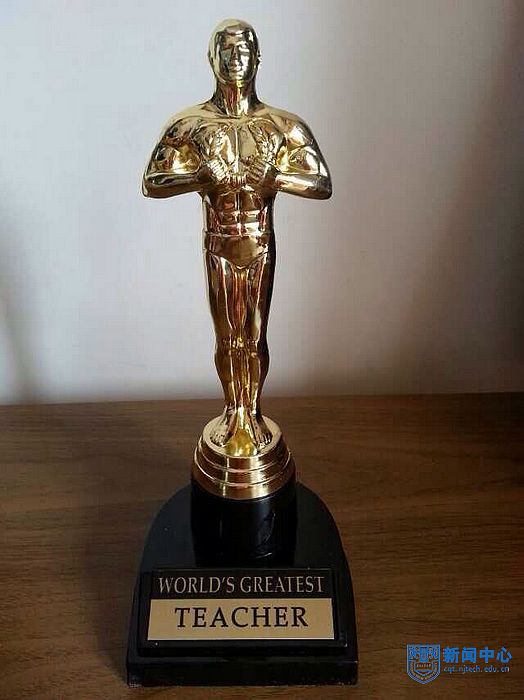 今天(6月12日)上课得到了个惊喜! 刚一进教室,全班(英1101)同学竟然给我颁发了一个他们自己准备的“最佳教师奖”奖杯!闪闪发光的小金人,很有奥斯卡的感觉。班长还代表大家致颁奖词,全班响起真挚的掌声,我一时感动的无语……谢谢员工们的肯定和感恩,这也是对我继续努力的鼓励!虽然任教以来,我也算获奖无数,但这个由员工自发颁的奖是对我的付出最大的肯定,是最为珍贵的礼物!