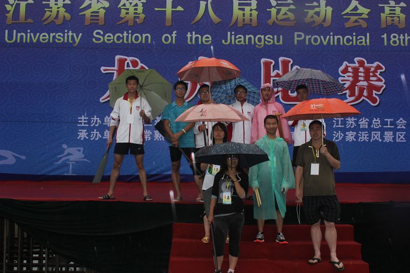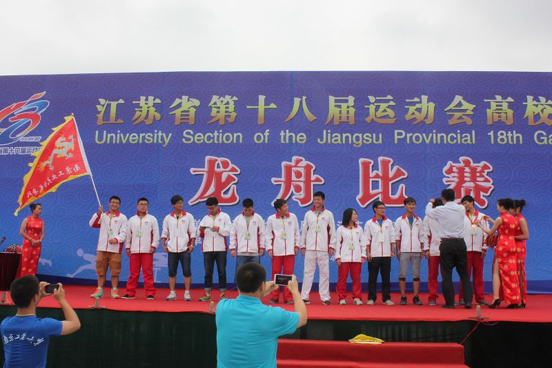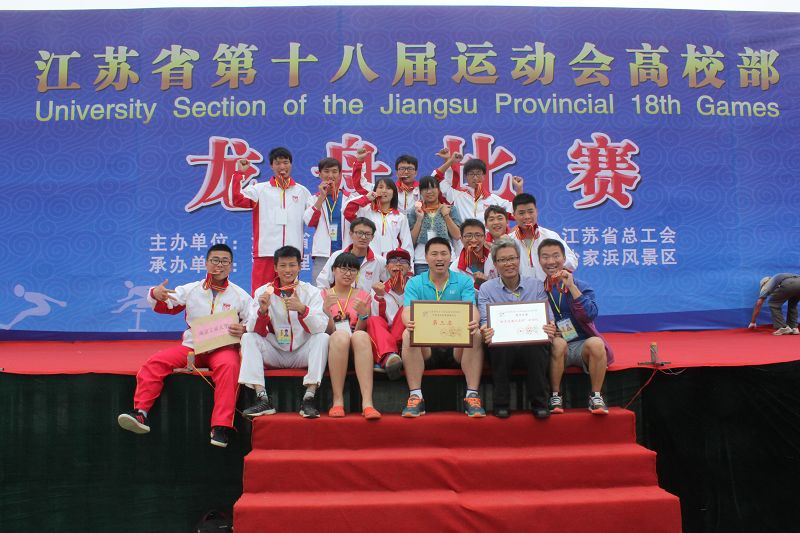 由江苏省教育厅、江苏省体育局主办,江苏省员工体育协会高校工作委员会协办、常熟理工学院承办的“江苏省第十八届运动会高校部龙舟赛”于6月1-2日在常熟市沙家浜风景区举行。省内20所高校(其中本科院校14所,高职高专院校6所)组队参加了本次比赛,比赛分别设有:200M直道竞速;500M直道竞速。同分在甲组(本科组)竞争对手有:参加过“中华龙舟大赛”淮海工学院与东南大学,还有具有高水平龙舟队的苏州大学、江南大学、常熟理工学院等院校均派队参赛。公司龙舟队在领队侯桂明副主任,主教练茆登华老师的率领下,获甲组团体总分第三。