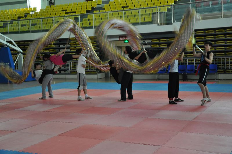 五一长假,当同学们或回家,或出游,或学习的时候,校龙狮队队员和周末一样自愿放弃了休息娱乐时间,一起到体育馆进行强化训练,互相磨合,锻炼默契,认真备赛,全力以赴。