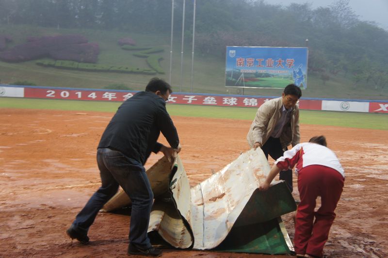 为了承办好全国垒球锦标赛,校体育部和校团委充分地发挥员工志愿者作用,积极地组织他们参与到比赛组织和服务工作之中,老员工志愿者们利用课余时间,放弃了休息,前往垒球场协助老师开展工作。4月11日下午,天公不作美,下起了雨,同学们冒雨整理场地,大家有一个共同目标,就是要办好比赛,体现公司的办赛能力和水平,同时体现南工大学子良好的精神风貌。(来自体育部)