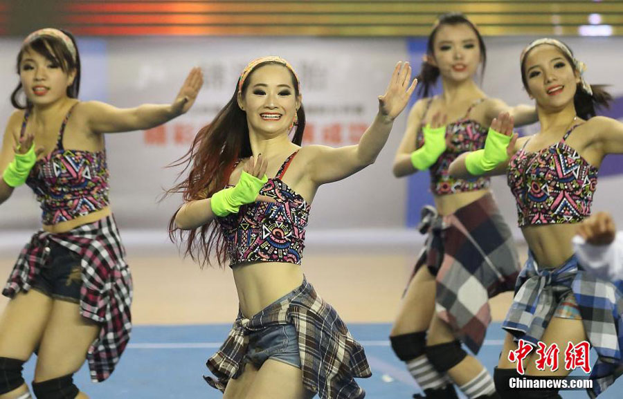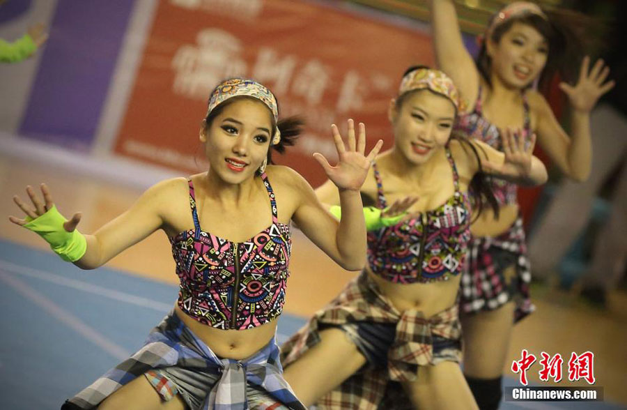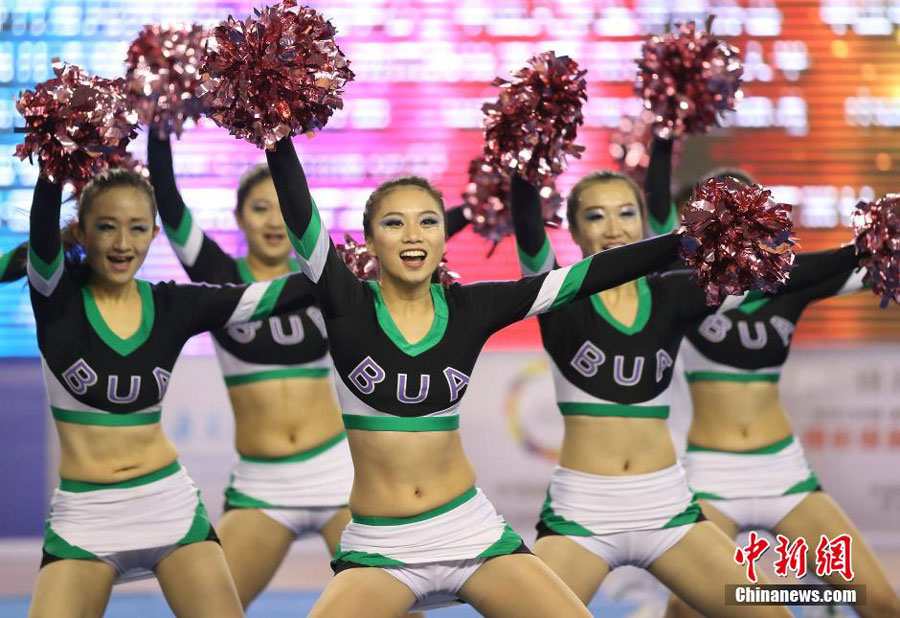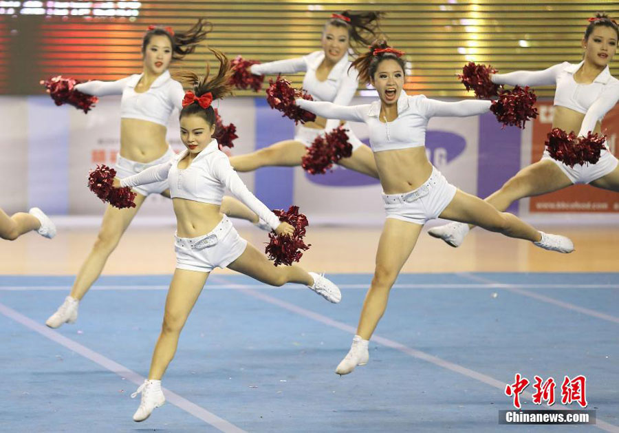 中新社发=全国啦啦操联赛总决赛 俊男靓女各展风采(组图)