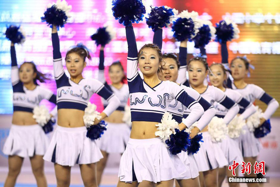 11月28日,2013年全国啦啦操联赛(总决赛)暨“中国啦啦之星”争霸赛总决赛在南京举行,来自全国各地高等院校、俱乐部等的三千多名俊男靓女同场竞技一决高下。啦啦操是一项集体操、舞蹈、音乐、健身、娱乐于一体的新兴体育项目,因其能体现张扬热烈、朝气蓬勃的精神力量,现已成为一项普及性极强、深受广大民众喜爱的活动。中新社发 泱波 摄