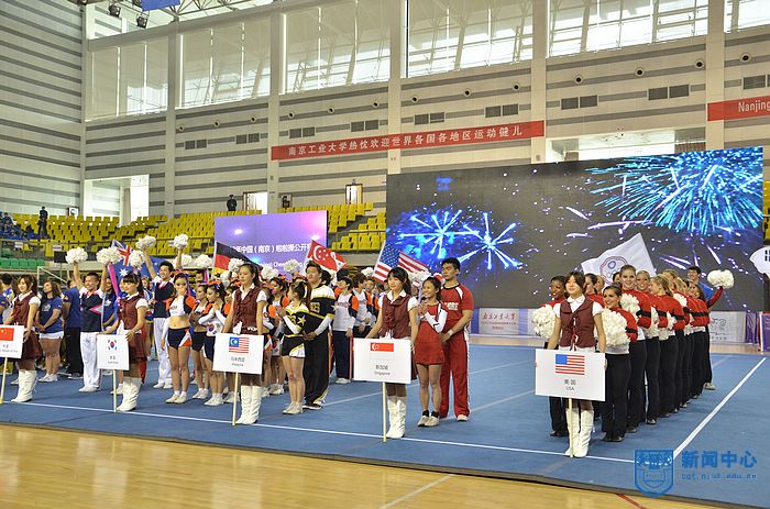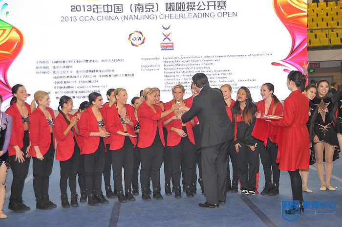 简短开幕式后,进行了精彩的比赛,共有来自中国、美国、澳大利亚、德国、韩国、新加坡、马来西亚、菲律宾、中华台北等九个国家和地区的300多名运动员参加比赛。经过近二个小时比赛,决出了名次。公开组集体花球前三名是,南京市啦啦操队、成都体育部、天津体育部。公开组集体爵士前三名是,美国、华东师范大学、北京体育部。混合双人配合技巧前三名是,美国、德国、中华台北。超级组混合集体技巧前三名是,华东师范大学、南京体育部、韩国。观看比赛的领导为获奖运动队颁奖。