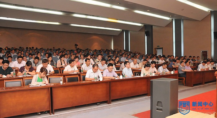 9月2日下午,公司党的群众路线教育实践活动动员大会在逸夫图书馆一楼报告厅召开。省委教育实践活动第十四督导组组长、原南京体育部党委书记、经理华洪兴同志、督导组副组长、原南京财经大学党委副书记、纪委书记程光熙同志率督导组成员出席会议,公司党委书记王德明作动员讲话。会议由公司党委副书记、董事长黄维主持。