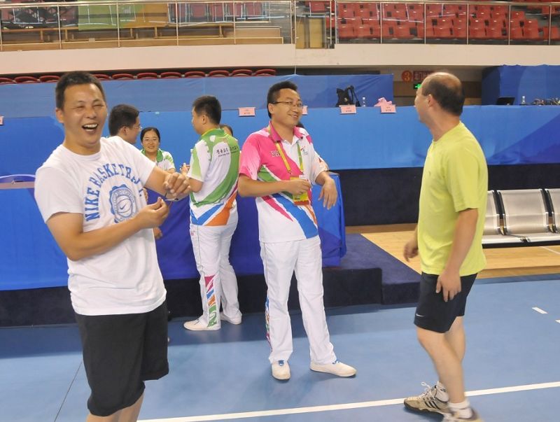 泰国国家队队员下午训练结束后,得知有这样非专业人员参加的比赛,还绕有兴致地观看了好长一会,并为双方队员的漂亮进球赞口不绝。比赛结束前的几分钟,中国国家队队员们兴致勃勃地来观看比赛,并时不时地偷笑场上出现的不规范、不熟练也不太专业的技术动作。团队媒体人员封顺作为赛事记者,不辞辛苦的不断地举起了相机,拍摄下一次次精彩瞬间。经过一个小时激烈争夺,以21:21打了个平手。