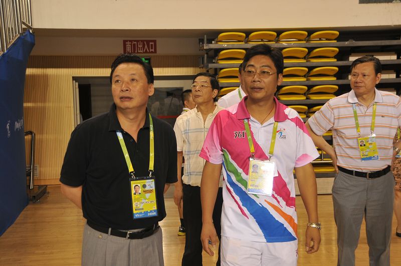 8月15日上午,国家体育总局副局长、中华全国体育总会副主席杨树安在江苏省体育局副局长周旭,校体育部主任、亚青会工大手球团队秘书长张天峰的陪同下,亲临公司亚青会手球场馆视察,先后来到了比赛场馆、竞赛组织办公室、手球团队工作室和和志愿者之家等。对手球团队的有效组织给予了高度评价,并鼓励大家继续努力,办好亚青会手球赛事。(来自体育部、宣传部)