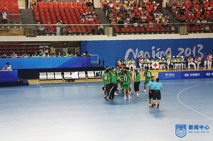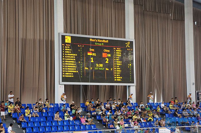 大家盼望已久的南京亚青会工大场馆手球比赛终于按照原定时间:8月13日中午12:00开赛,首场比赛由沙特阿拉伯队对阵蒙古队,接着又进行的三场比赛分别为:叙利亚队对阵哈萨克斯坦队、伊拉克队对阵中国队、韩国队对阵香港队。最后一场比赛一直进行到19点才结束。精彩的比赛吸引了众多的江浦中小员工,他们在家长陪同下前来观看,这些观众当中极大多数还是第一次到现场享受那国际性的重大赛事,看到他们脸上露出那欢快笑容,工大手球团队参与赛事组织的同志和老员工赛事志愿者感到无比的欣慰。