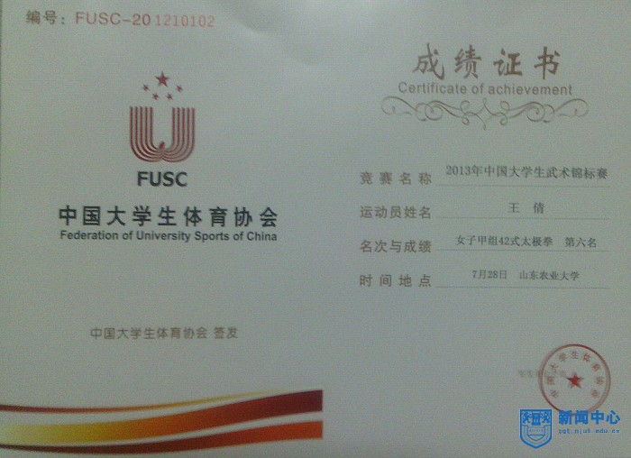 7月24日上午,校三名运动员与南京农业大学、中国药科大学几名高水平运动员和教练及领队一起乘高铁历经两个小时到达山东泰安,参加由山东农业大学承办的2013年中国老员工武术锦标赛暨首届“董事长杯”太极拳比赛,刚下火车,站在雄伟壮丽的泰山脚下内心多了份谦卑和沉稳,少了份躁动与忐忑。