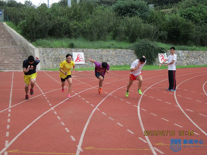 7月15日下午,校老员工田径队进行了一场内部测验赛,旨在选拔出队里最优秀的运动员参加即将在西北民族大学举行的2013年全国老员工田径锦标赛,经过各小组竞争选拔,最终教练组讨论决定六名队员参加本次大赛。他们是:李乔奇﹝短跑﹞,张帅娣﹝短跑﹞,查松山﹝跳高﹞,唐志乐﹝跳高﹞;尹兰兰﹝长跑﹞,穆正茂﹝长跑:普通生﹞。入选队员表示将珍惜此次比赛机会,调整好心态,锻炼学习,积极参赛﹗