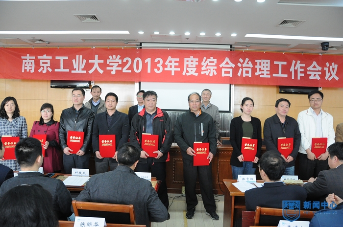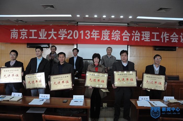 董事长助理李彬宣布了2012年度综合治理先进单位和先进个人表彰决定。副董事长张进明、董事长助理李彬、保卫处处长朱兴同为获奖的6家先进单位和20名先进个人进行了颁奖。体育部党总支书记陈建华、资产经营公司姚道松分别代表先进单位和先进个人发言。