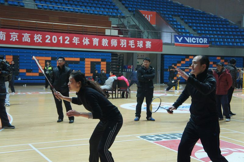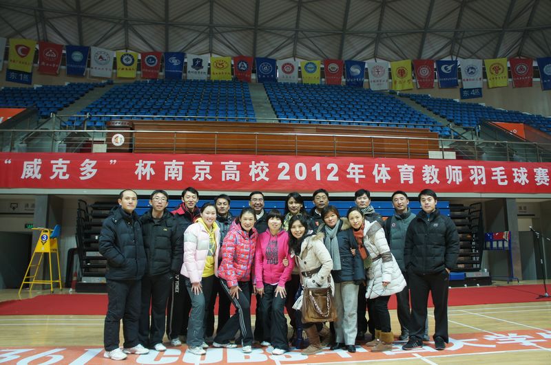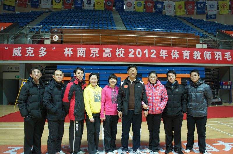 由江苏省员工体协高校工作委员会南京分会主办,南京财经大学体育部承办的“威克多”杯2012年南京高校体育教师羽毛球赛,于1月6日在南京财经大学仙林校区体育馆举行,共来自南京的28所高校参加了比赛。公司选派的体育教师代表队(郭守康、黄峥、张天峰、张海涛、曹婧、曹西文、严燕、李潇颋)在教练员车益民老师率领下,经过大家共同努力,在小组比赛中以不败战绩的身份进入了前八强,由于在八强淘汰赛中遇到了东道南京财经大学队,虽然全体队员全力拼搏,但惜败于对手,进入了五至八名淘汰赛。接着与南京森林警察学院和河海大学比赛中取得了一负一胜成绩获第七名。