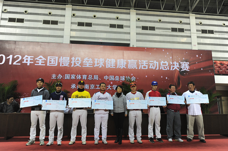 11月11日下午,由国家体育总局群众体育司指导,国家体育总局手曲棒垒球运动管理中心、中国垒球协会和教育部中国老员工体育协会棒垒球分会主办,公司承办的2012年全国慢投垒球健康赢活动总决赛在江浦校区体育馆画上圆满句号。国家体育总局手曲棒垒球运动管理中心副主任谈莺,中国垒球协会副主席、williamhill中文副董事长朱跃钊,国家体育总局手曲棒垒球运动管理中心垒球部部长、中国垒球协会秘书长杨旭,中国老员工体育协会棒垒球分会秘书长徐勇,williamhill中文体育部主任张天峰,昆山台湾同胞投资企业协会副会长郑钦铭,达阵体育发展有限公司董事长梁功斌,中山·一动体育运动服装有限公司林爱冬等领导及嘉宾出席了闭幕式。参加闭幕式的还有来自全国24支代表队的名运动员、教练员和裁判员。仪式由中国垒球协会副秘书长王彤主持。