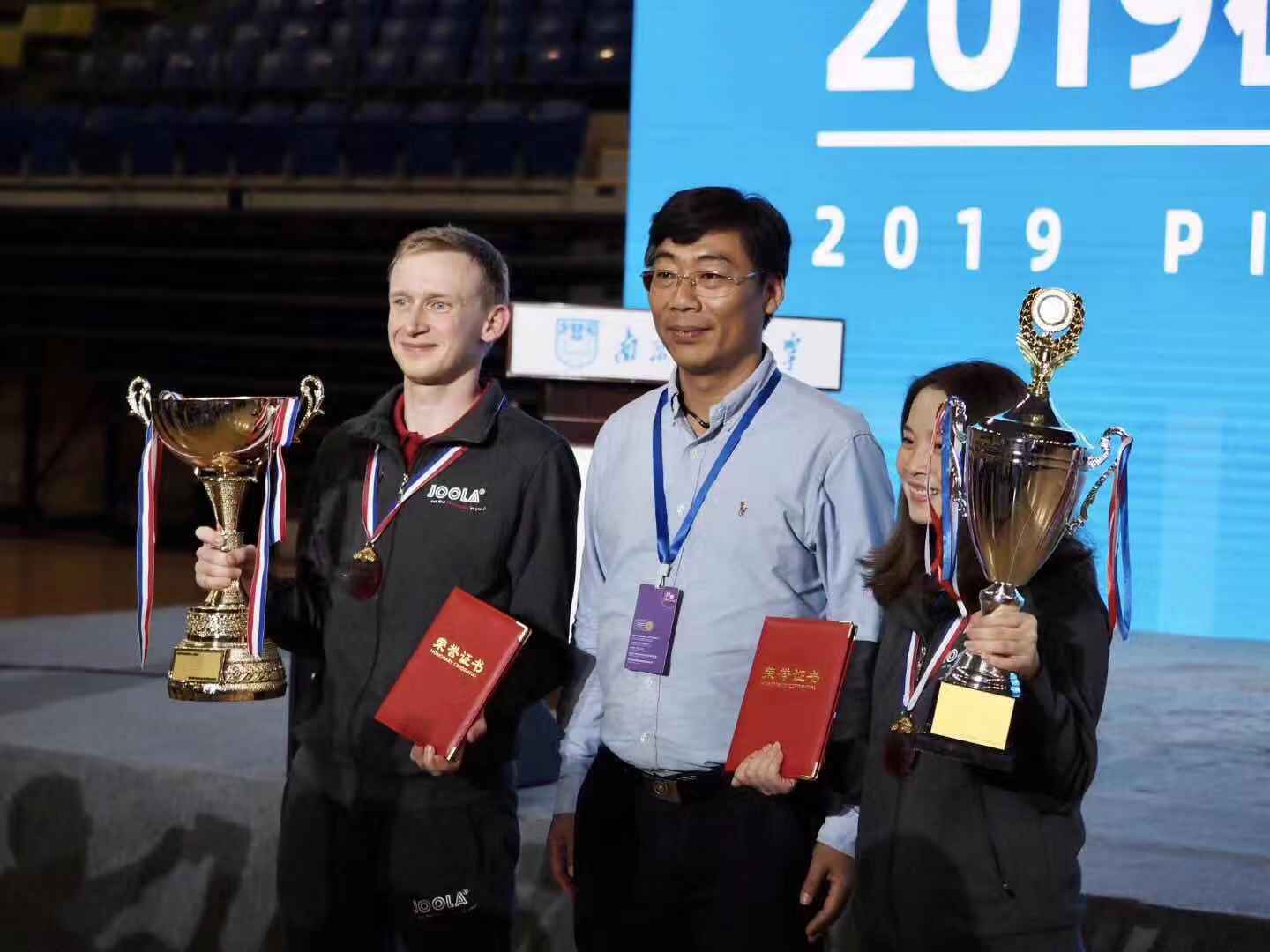 2019砂板乒乓球世界杯于11月1日到4日在公司成功举办,中国乒乓球协会原副主席陆元盛,中国乒乓球协会副主席李一冰,公司党委书记芮鸿岩等出席此次比赛闭幕式。